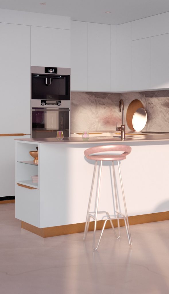 Une cuisine contemporaine dans un univers futuriste, inspiré du charme du premier Space Age des années 60 et 70. Une ode à l’avenir, où les formes organiques souples et les matériaux modulables se marient pour créer une esthétique à la fois élégante et résolument moderne.